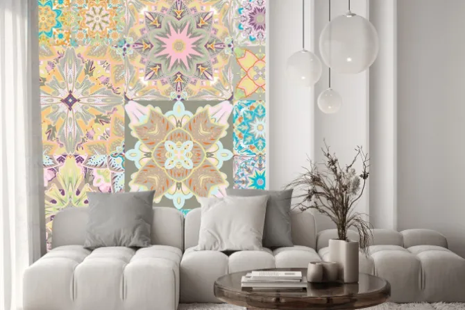 geometryczne, ornament, mozaika, dekoracyjne, architektura, style, retro