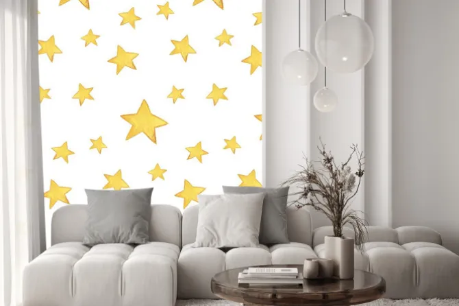 Naklejka: Jednolite wzór akwarela: wesołych świąt, żółtych gwiazd
