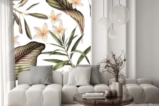 Naklejka: Jednolite wzór tropikalny kwiat, akwarela.