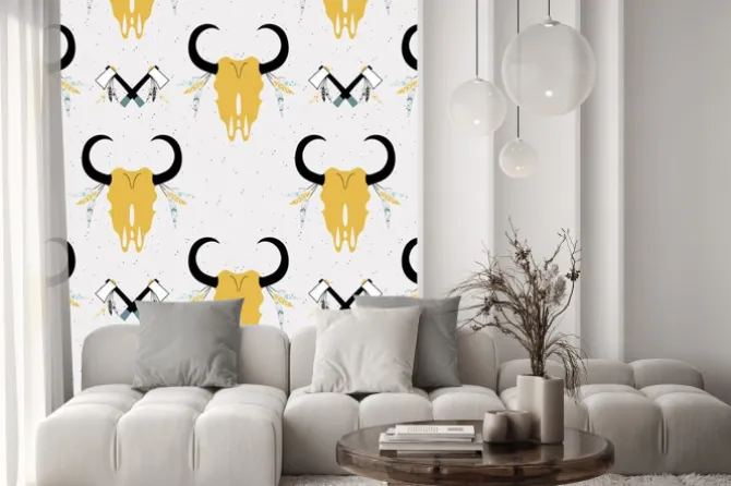 Naklejka: Jednolite wzór z dzikim czaszki.