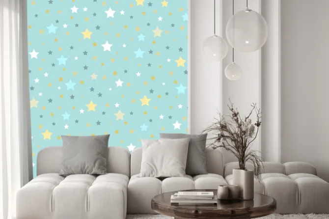 Naklejka: Jednolite wzór z gwiazd na turkusowym tle blado.