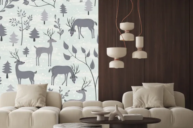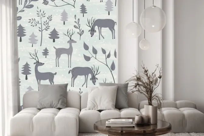 Naklejka: Jednolite wzór z jelenia w lesie zima
