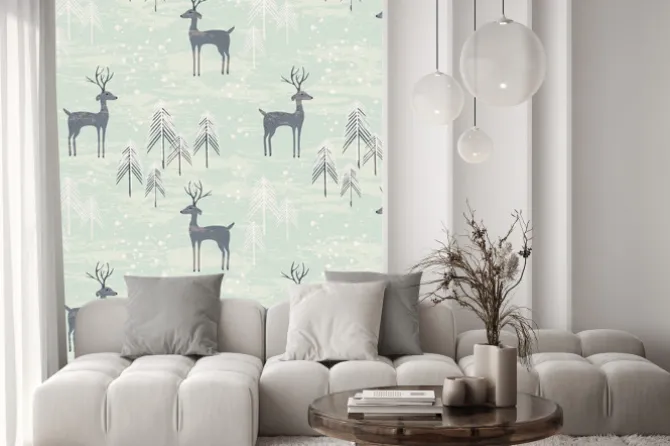 Naklejka: Jednolite wzór z jelenia w lesie zima