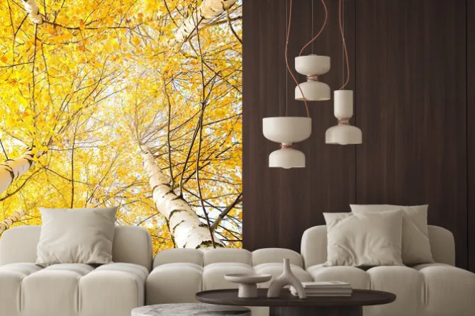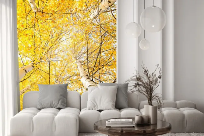 Naklejka: Jesienne drzewa z żółknięcie liści na tle nieba