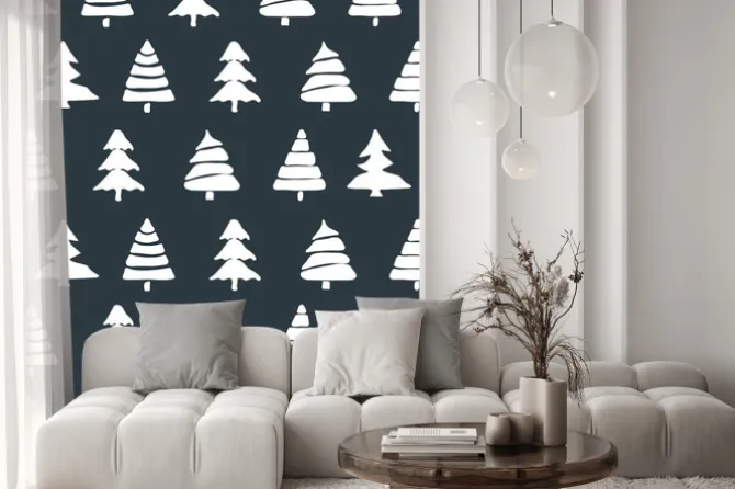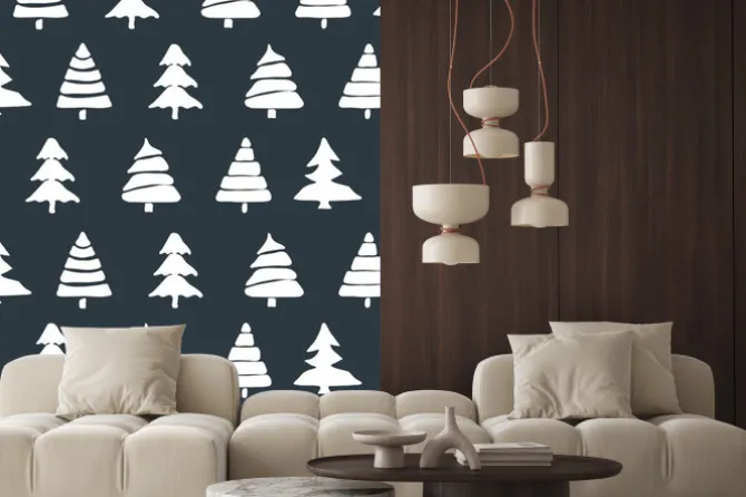 styl skandynawski, drzewa, ornament, dekoracyjne, las, natura, drewno, czarny