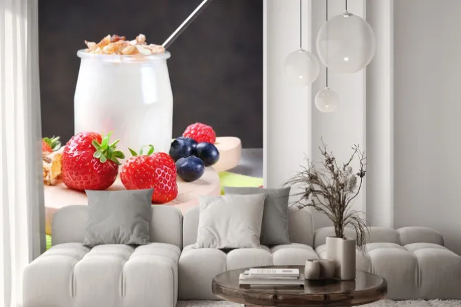 Naklejka: Jogurt z musli i owoce miękkie
