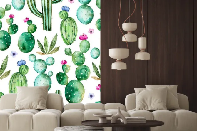 Naklejka: Kaktusy malowane akwarelą na białym tle