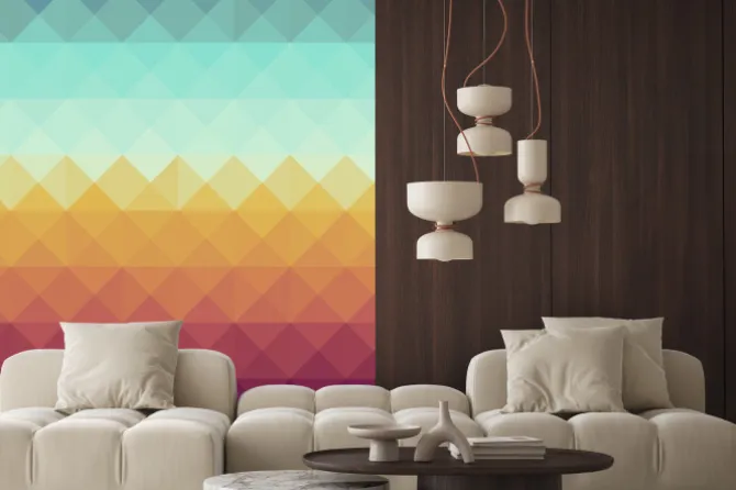 geometryczne, mozaika, dekoracyjne, style, retro, różowy, żółty, czerwony