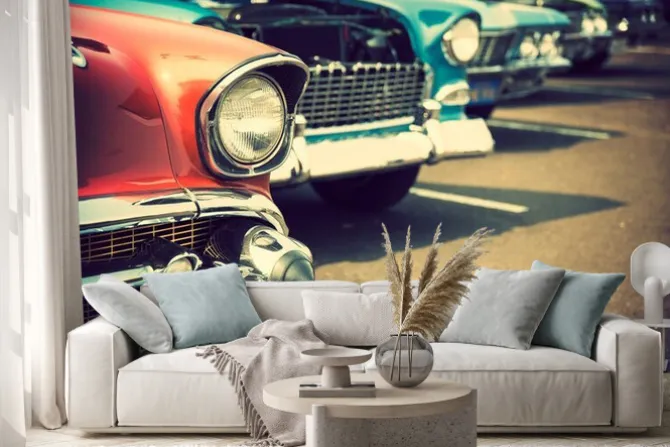 Naklejka: Klasyczne samochody w rzędzie
