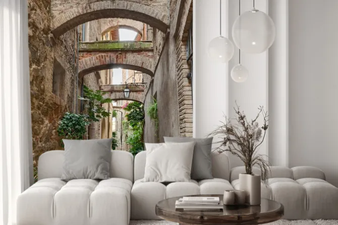 Naklejka: Klimatyczna włoska uliczka z łukami