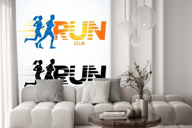Klub prowadzony szablon logo. Sport szablonu logotyp, klub sportowy, bieganie i fitness klub szablon wektora projektowania logo. Mężczyzna i kobieta ćwiczeń..