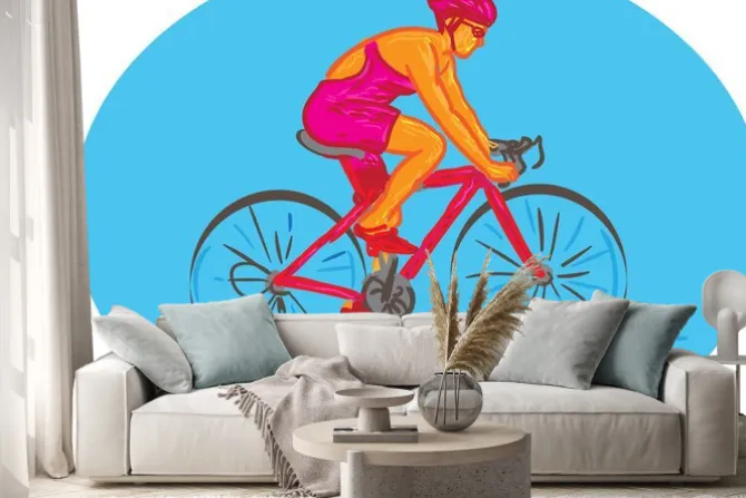 Naklejka: Kobieta rowerzysta jazda na rowerze drawing
