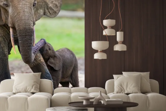 Naklejka: Kobieta słonia z dzieckiem. republika środkowoafrykańska. republika
