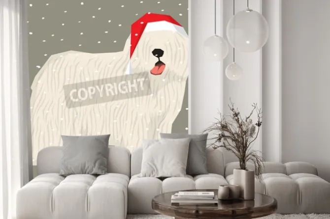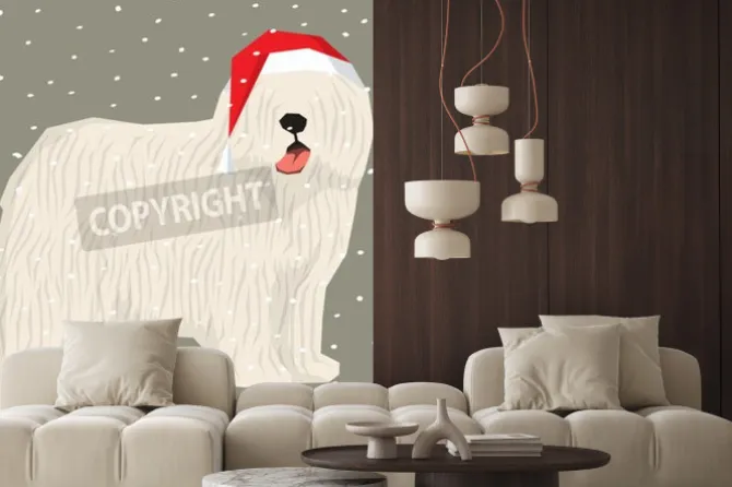 Kolekcja pies wielokąt wektor. Pies w Bożenarodzeniowym Santa kapeluszu. Komondor.
