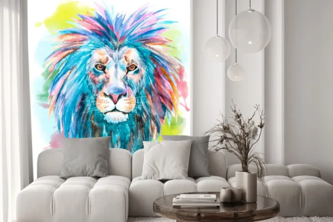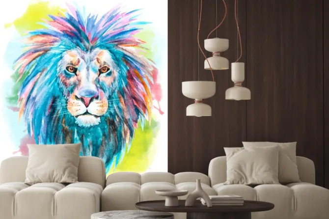 Naklejka: Kolorowa głowa lwa w stylu akwarelowym