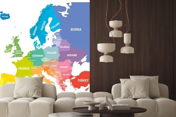 Kolorowa mapa polityczna Europy z nazwami państw.