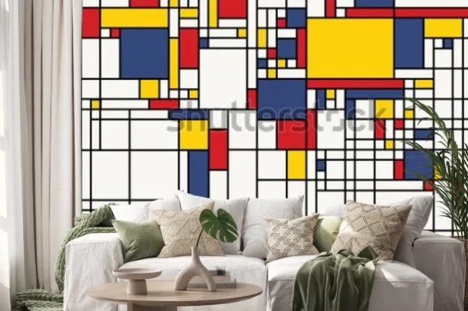 Kolorowa mapa świata w stylu Mondriana.