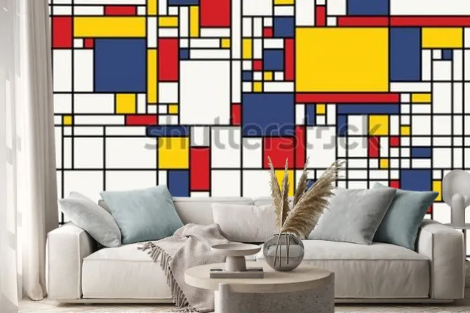 Naklejka: Kolorowa mapa świata w stylu mondriana