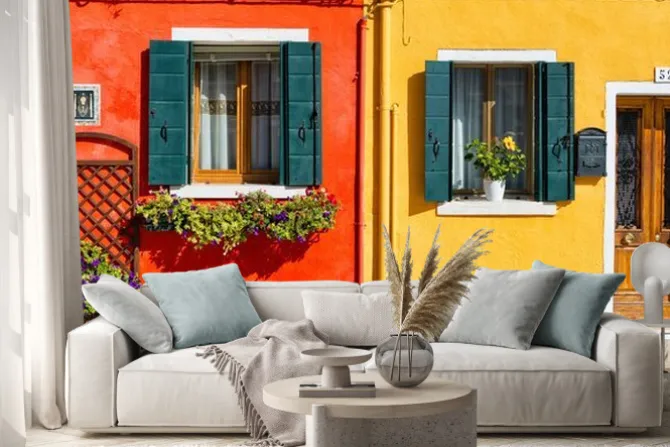 Naklejka: Kolorowe fasady domu w burano, włochy