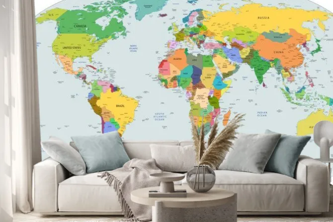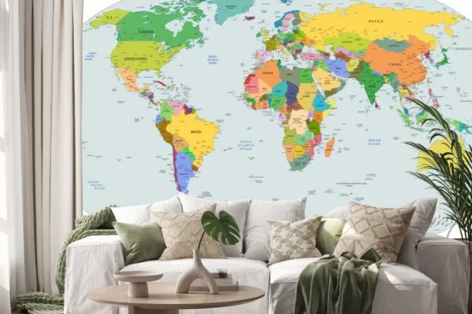 Naklejka: Kolorowe kraje na mapie politycznej świata