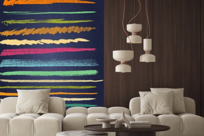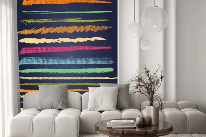 Naklejka: Kolorowe kredowe paski na granatowym tle