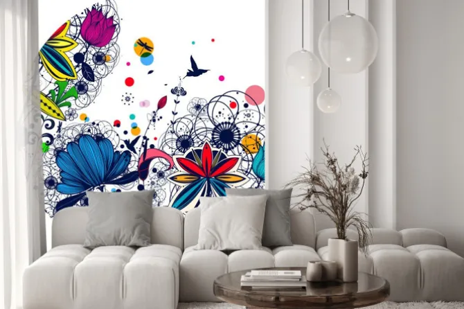 Naklejka: Kolorowe kwiaty i wzory w okrągłej kompozycji