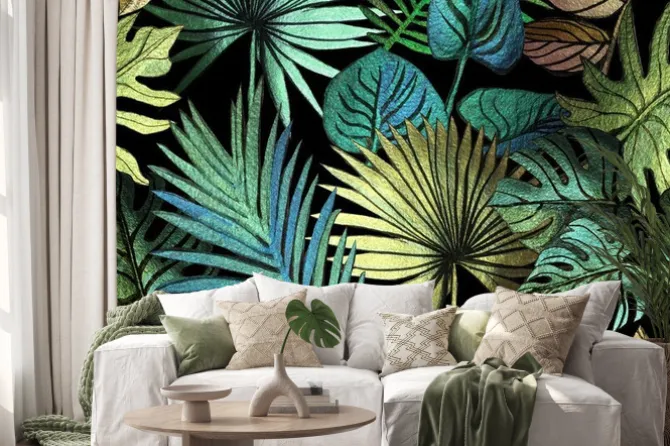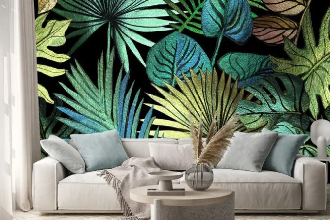 Naklejka: Kolorowe liście tropikalne z efektem połysku