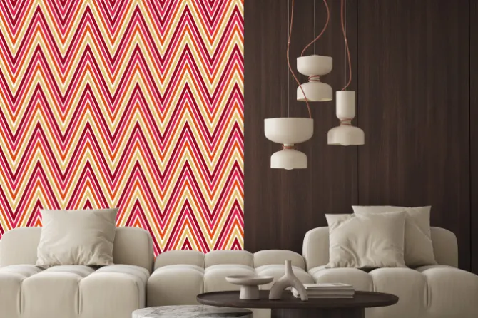 zygzak, geometryczne, ornament, dekoracyjne, style, retro, różowy, czerwony