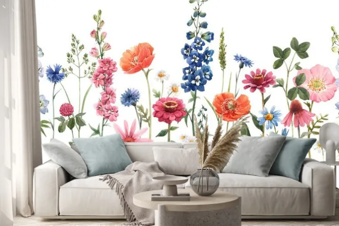 Naklejka: Kolorowe polne kwiaty na białym tle