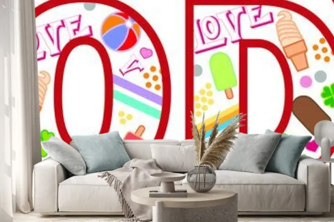 Naklejka: Kolorowy napis lody z ilustracjami