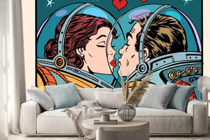 Komiksowa para zakochanych astronautów.
