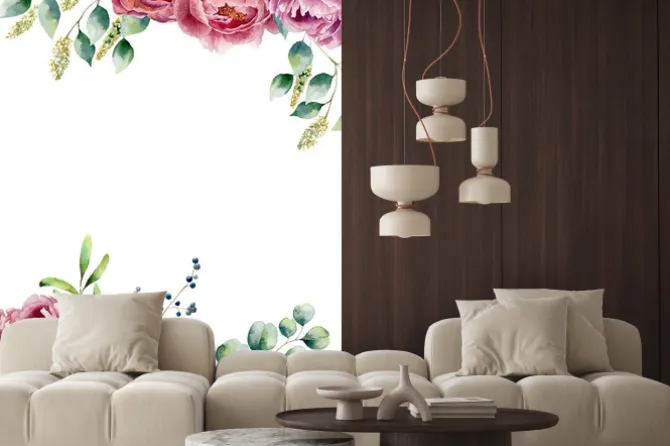 Naklejka: Kompozycja horyzontalna z akwarelowych piwonii i gałązek