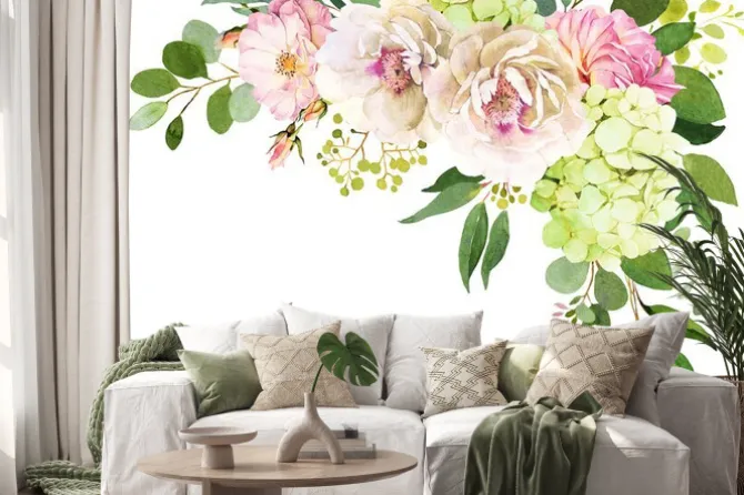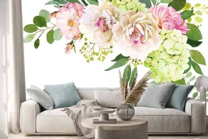Naklejka: Kompozycja kwiatowa w odcieniach różu i bieli