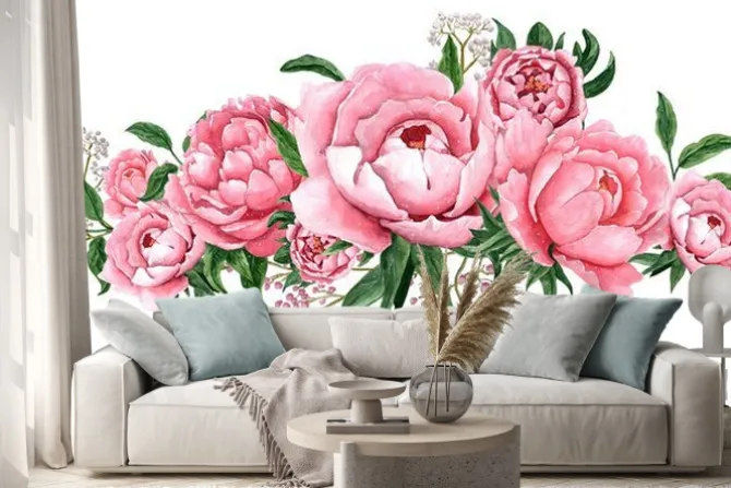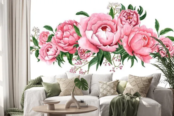 Naklejka: Kompozycja z różowych piwonii