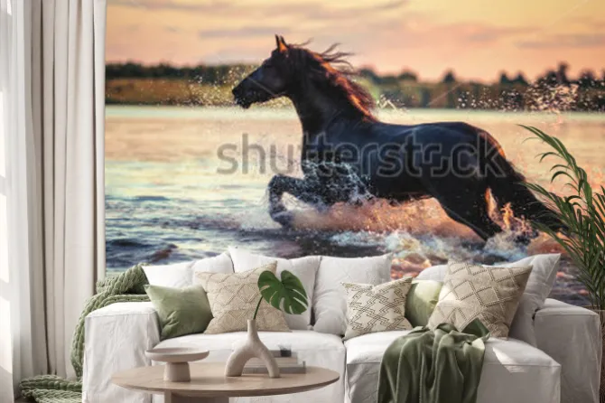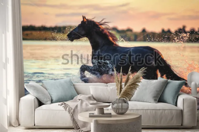 Naklejka: Koń biegnący przez wodę