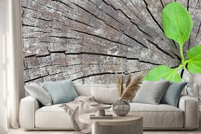 Naklejka: Koncepcja ekologii. rosnąca kiełkowa plantain starych drzew i
