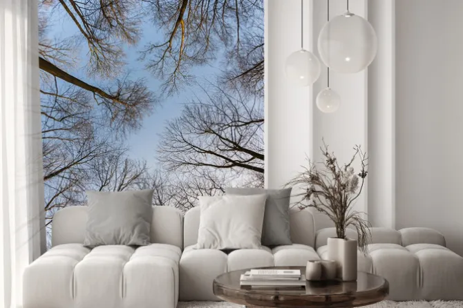Naklejka: Korony drzew z jasnego nieba