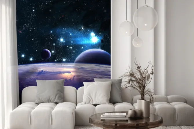 Naklejka: Kosmiczny pejzaż z planetami i mgławicą