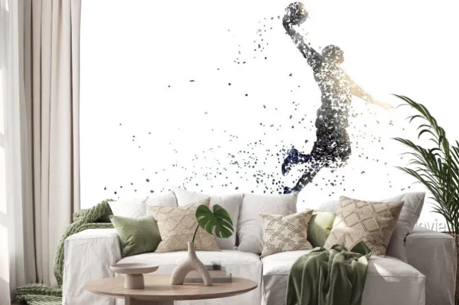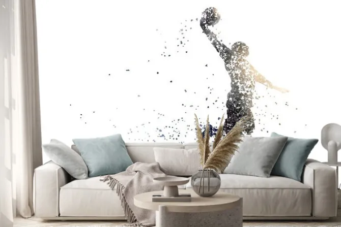 Naklejka: Koszykarz w trakcie skoku z piłka