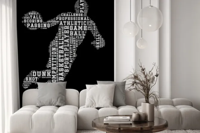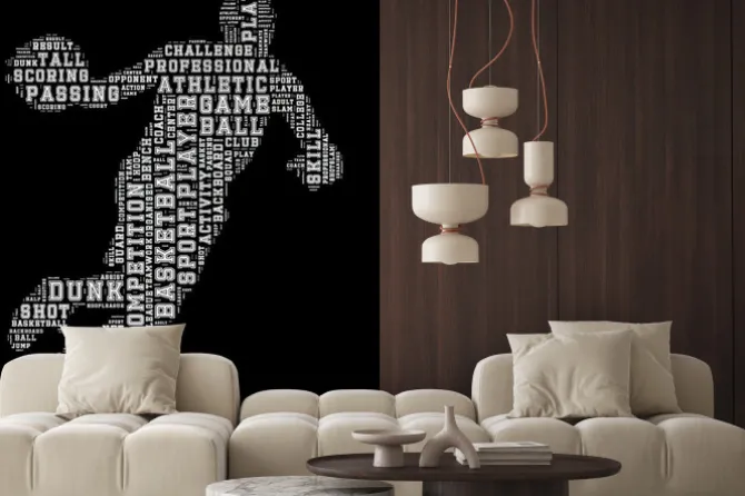 Naklejka: Koszykarz word cloud, koszykówka typografii tle