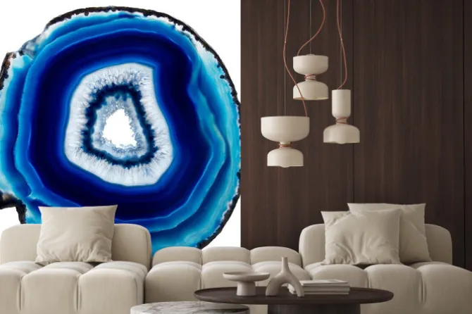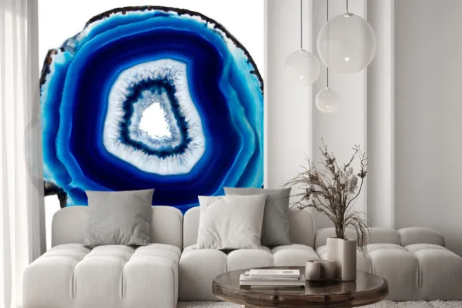 Naklejka: Kromka niebieski agat kryształ na białym tle
