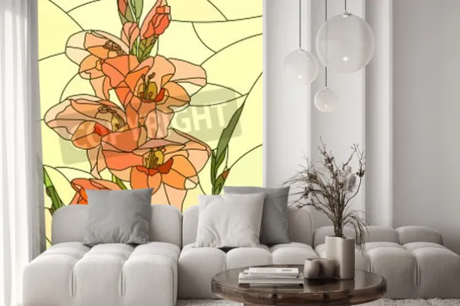 Naklejka: Kwiat mieczyk na witrażu