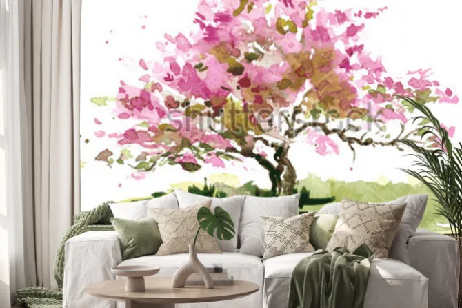 Naklejka: Kwiat wiśni, rysunek przez akwarela, akwarela szkic kwitnących