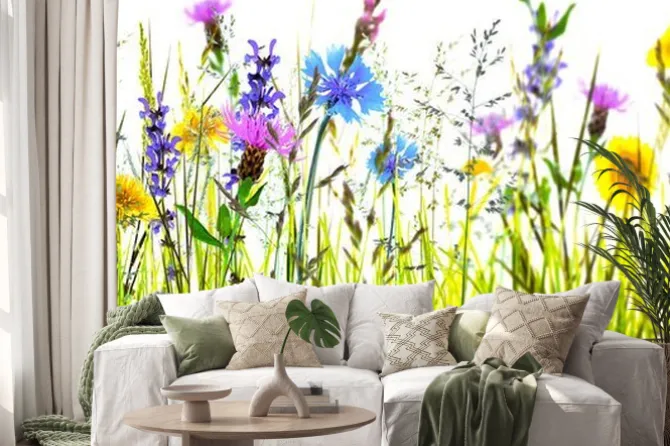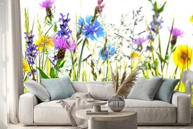 Naklejka: Kwiatowa łąka na białym tle