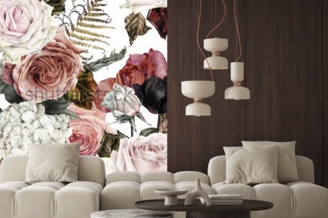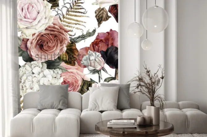 Naklejka: Kwiatowy wzór z różami, akwarela.