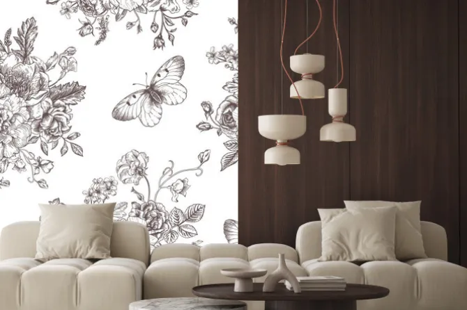Naklejka: Kwiaty bez szwu wzór i motyli.