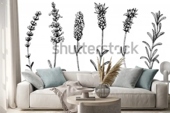 Naklejka: Kwiaty lawendy dzikich i odmian. vintage kwiatowy zestaw. ręcznie