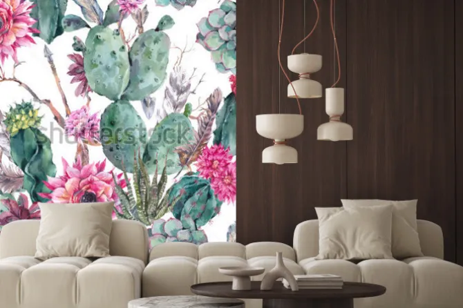 Naklejka: Kwitnące kaktusy malowane akwarelą
