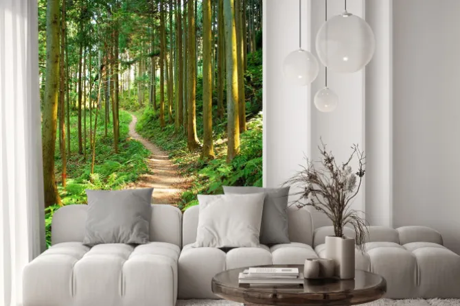 Naklejka: Leśna ścieżka otoczona zielonymi drzewami