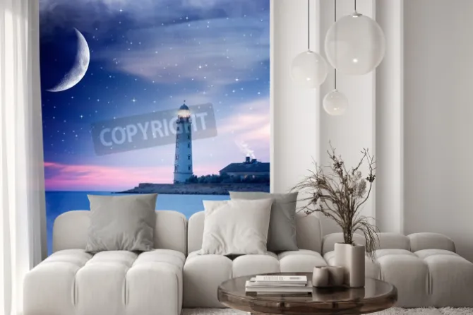 Naklejka: Lighthouse at night